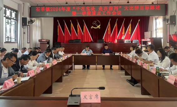 为深入学习贯彻习近平总书记关于“干在实处永无止境,走在前列要谋新篇,勇立潮头方显担当”的重要指示精神,研究部署好我镇2024年度全镇大比拼重点工作目标,扎实开展好我镇2024年度的重点工作。4月24日石羊镇召开2024年度“干在实处,走在前列”大比拼目标陈述暨一季度重点工作会议。