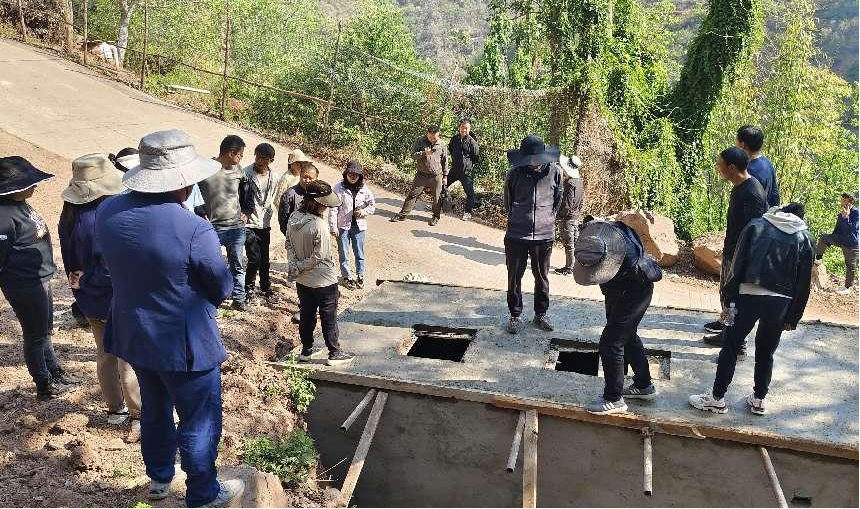 当然,“两污”工程绝不是一把尺子量到底,而是利用地势落差,因地制宜、实事求是采用“大三格、小三格”的污水处理模式。“化粪池本质是生物净化,利用细菌的生化作用分解有机物质,将粪便和污水中的有机废物转化为沼气和沼液,再排入河流或用于农作物灌溉,这个项目有益村庄有益农户,我家是支持的”正在建盖化粪池的村民李大哥笑呵呵地说到。针对全乡53个村民小组,集镇驻扎地小组通过污水处理设备收集处理,农户集中的27个小组采取大三格化粪池集中收集处理,半集中半分散的15个小组采取集中+分散相结合方式处理,农户分散偏远的10个小组采取小三格化粪池分散收集处理,做到宜纳则纳、宜分则分、高效节约。