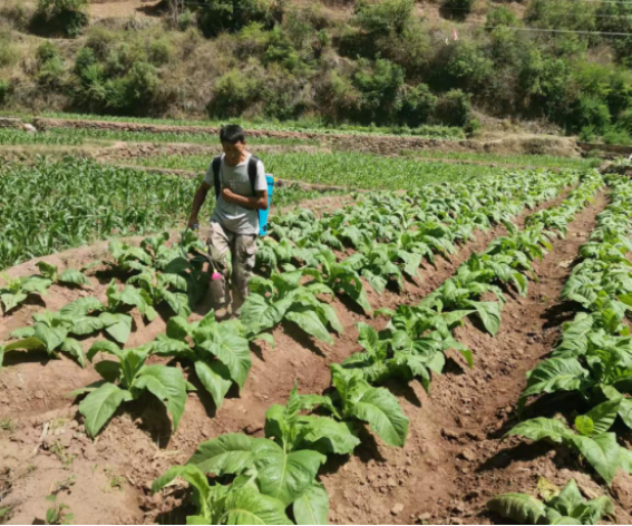 叭腊么村委会新村小组种植大户周红远边忙碌边说:“烤烟已经移栽了近两个月,进入芒种节气以来,石羊镇雨水逐渐增多,烟株进入生长旺期,简直是一天一个样。去年种了56亩烤烟,收成很不错,今年的烟苗长势还可以,希望今年的烤烟依旧可以有个好收成。”