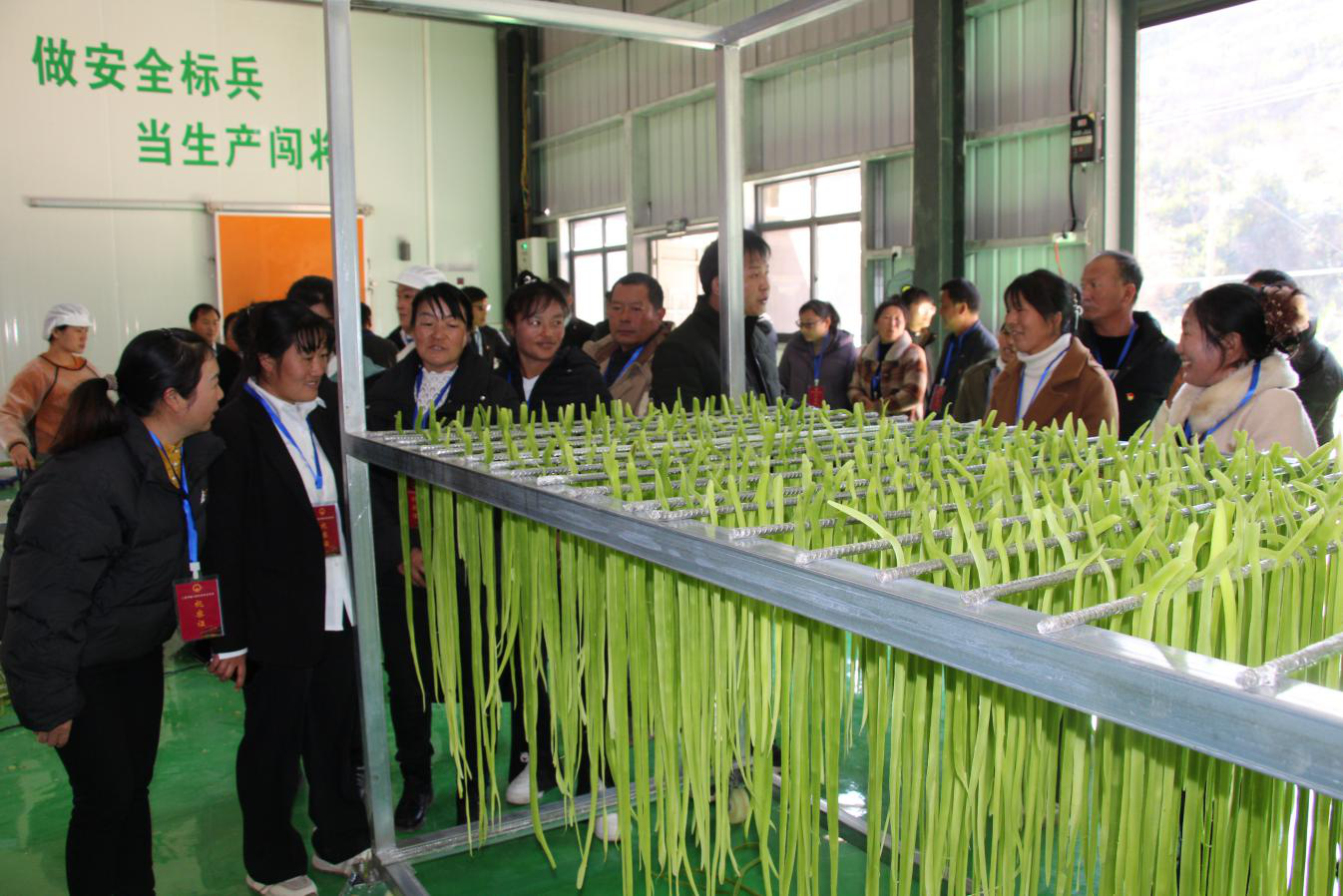 代表们来到贡菜加工厂生产车间,实地查看了贡菜的加工流程。从去头、削皮、开条、到晾晒风干,代表们仔细询问了加工环节的技术标准和质量控制情况。厂方负责人详细介绍了贡菜加工的技术创新和市场拓展情况,并表示将进一步提升产品质量和生产效率,为贡菜产业发展作出更大的贡献。