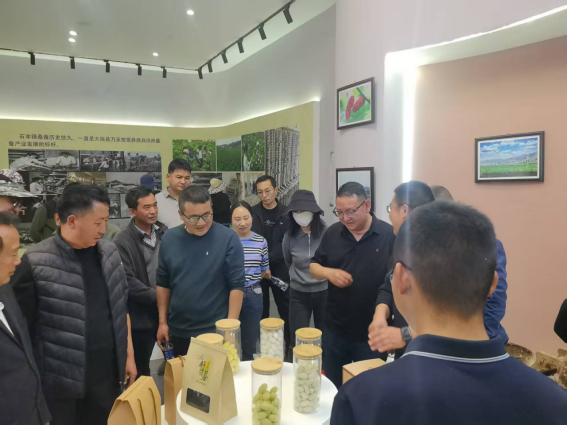 走进蚕桑示范园,参会人员参观了园区建设情况,投资396万元建设柳树塘蚕桑示范园,形成了集桑园基地建设、蚕种繁育、大蚕饲养、蚕茧收购烘烤、蚕桑技术推广及科研、蚕桑文化科普展示和桑叶茶厂为一体的示范基地,推动蚕桑产业发展经营组织化、装备设施化、生产标准化、产业特色化,进一步提高了产业效益。