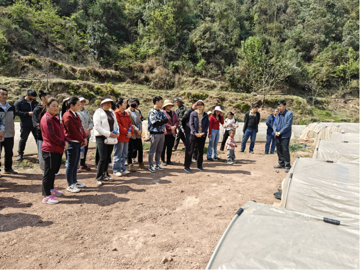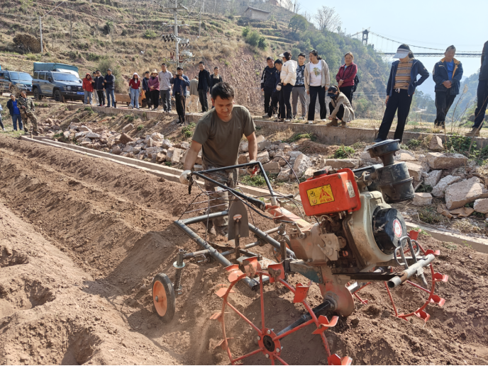 现场观摩学技术。会后,全体人员前往六苴社区大工队烤烟预整地示范点,实地观摩机械化打塘操作。在田间地头,烟叶站站长刘炳亮讲解了株距标准、技术要领,烟叶站技术员现场演示了烤烟打塘机的使用方法,该设备每分钟可完成打塘作业约70个,较人工效率提升5倍以上。动员各村要鼓励农户积极采用农机新技术,降低劳动强度、提高种植效益。