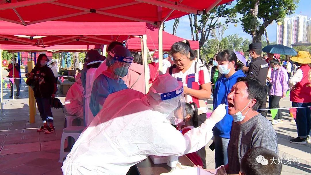 大姚县公安局特警大队志愿者熊兴超说:“国庆期间,大姚县公安局全体民警辅警在岗在位,今天到蜻蛉湖广场核酸采集点维护现场秩序,如果现场有人民群众需要帮助时,我们会及时伸出援手。”