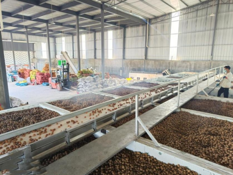 (过拉集镇宏光农业点群众在分拣、打包核桃)