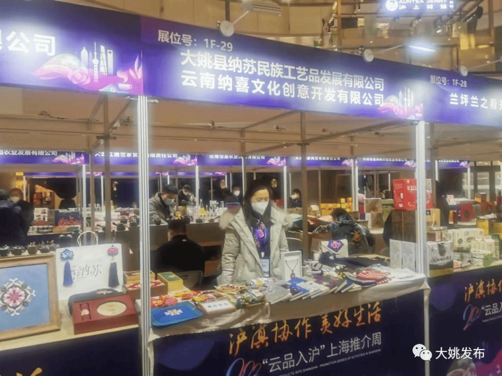 在为期7天的活动中,大姚广益发展有限公司的核桃系列产品、大姚纳苏民族手工艺品发展有限公司的彝绣手工艺品,同全省150多家云南精品农产品生产企业的900多种云南高原特色农产品同台作现场展示,并结合线上“主题+专题”带货直播,将云南文化、艺术、美食搬到上海,让上海市民发现更多云南好物、体验更多云南民俗、感受更多云南之美。县投资促进局相关人员参加了系列活动。