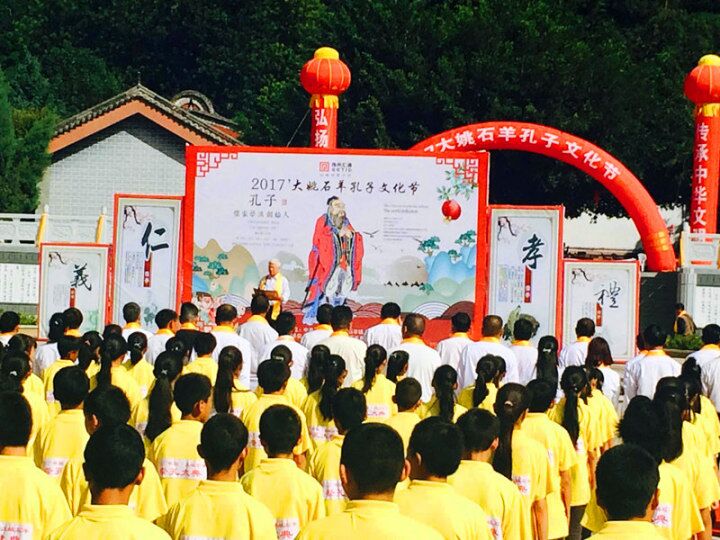 祭拜先圣孔子,庆贺核桃丰收、传扬彝绣文化。在国庆、中秋佳节即将来临之际,9月28日,在孔子诞辰2568年的日子,“2017中国·大姚·孔子文化节·核桃文化节·彝绣文化节”隆重举行。来自全国各地的嘉宾和大姚县各族群众学生、演员、媒体记者、1万多人欢聚蜻蛉湖广场,参加“三节”开幕式。