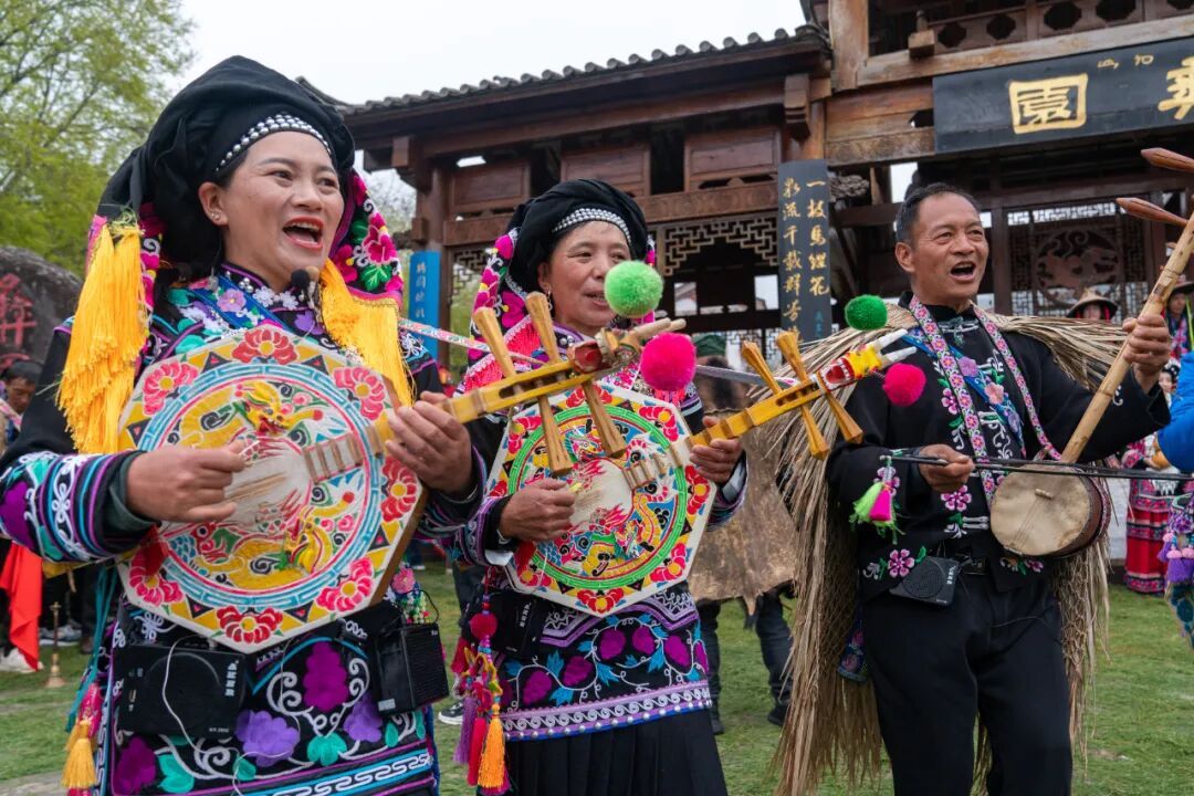 农历二月初八,是彝族一年一度颇具特色的传统节日——插花节。节日当天,非遗传承·2025大姚“昙华彝族插花节”群众文化活动迎宾仪式在昙华乡彝园寨门盛大举行。
