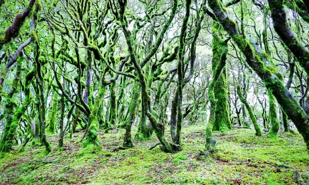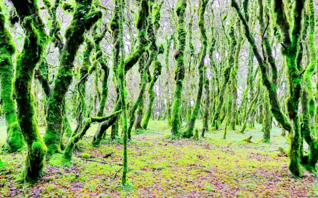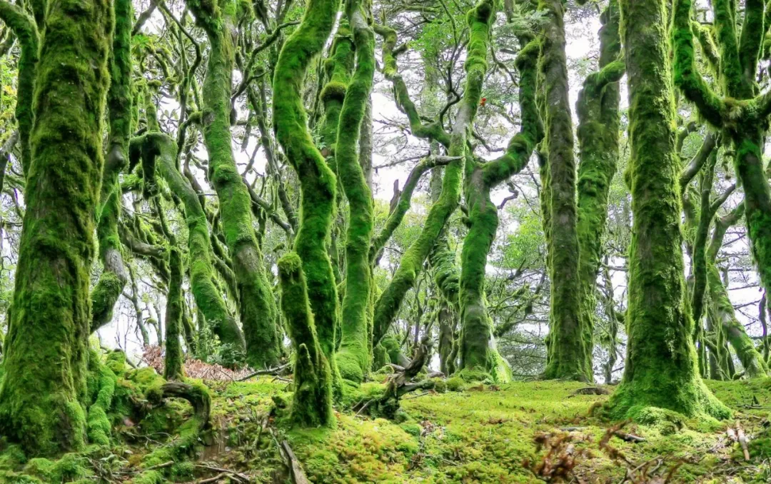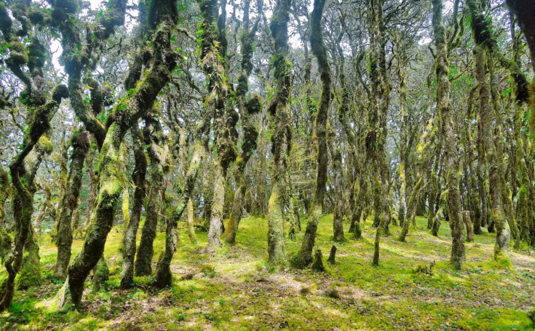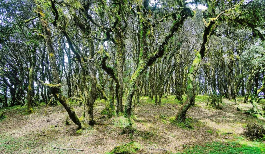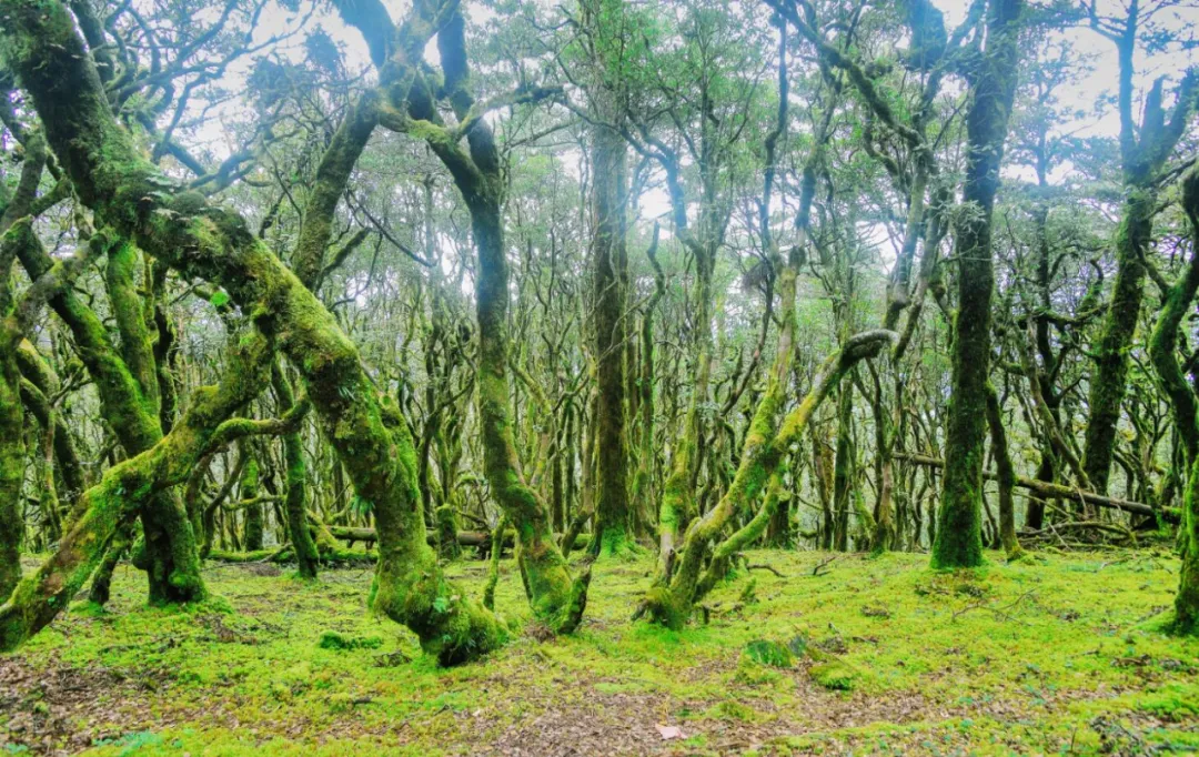 万猴林位于百草岭半山,那些立身于肥沃高山千古不朽的栗树重重叠叠的枝桠,长满了树花和青苔,毛茸茸的树花和青苔挂在树上,或厚重,或轻柔,形成了万千姿态,活脱脱如群猴嬉戏。穿梭在万猴林,你不能不感叹大自然的鬼斧神工。