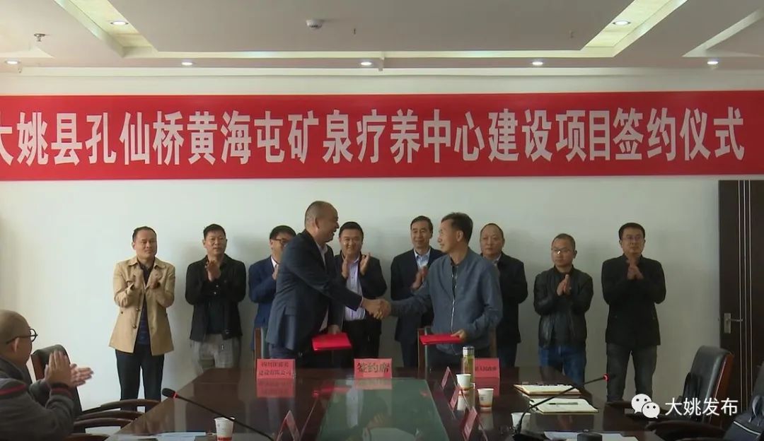 四川佳富美建设有限公司与我县签订了大姚孔仙桥矿泉疗养中心建设项目框架协议和黄海屯矿泉疗养中心建设项目框架协议。大姚孔仙桥矿泉疗养中心、黄海屯矿泉疗养中心建设项目均以矿泉资源为主题,主要开发矿泉体验中心、矿泉度假中心、康体疗养中心、体育游乐中心等高端旅游、康养业态,项目预计总投资人民币5亿元。