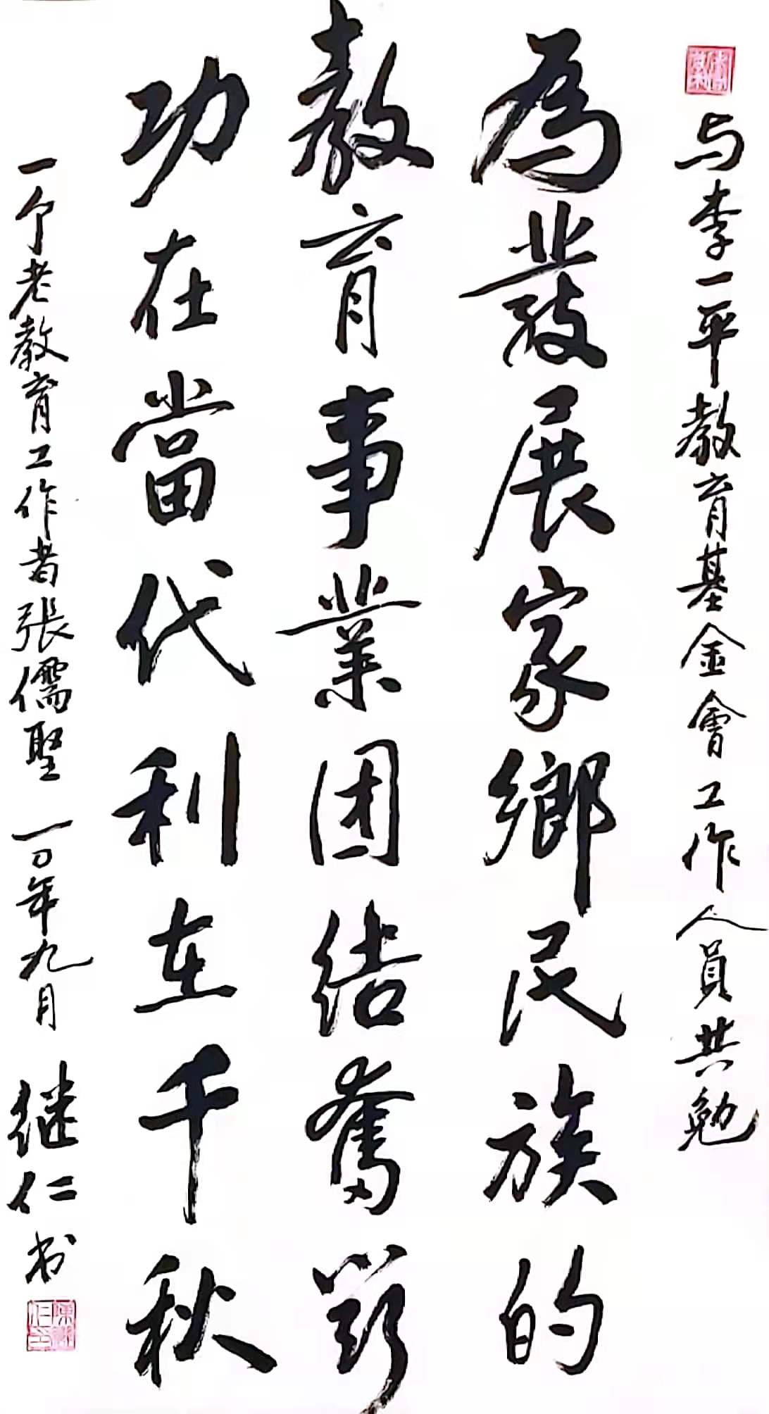 “乡富我荣耀,乡贫我操心,百年大计,教育为本”很好的诠释了张儒圣老先生身在异乡,情系故土,心怀教育的高尚情怀。基金会秘书处曾为张儒圣老先生作一首小诗,以表对先生的敬意和感激!