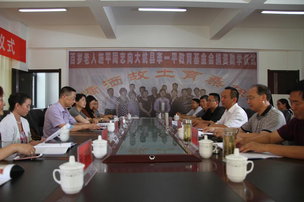2017年4月5日,大姚李一平教育慈善基金会第五届理事会第一次会议留影(右八为陆积峰) |