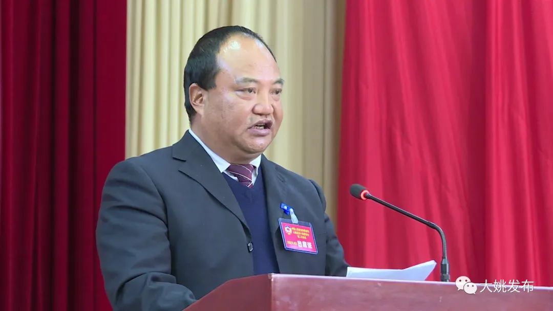 县政协委员杨新就《对大姚核桃产业可持续发展的建议》作发言。