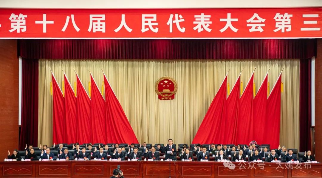 1月19日下午,大姚县第十八届人民代表大会第三次会议完成各项议程,在县城落下帷幕。