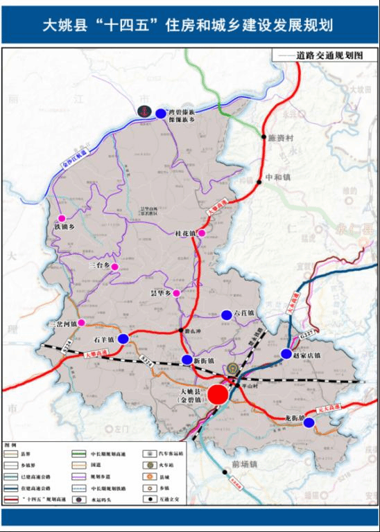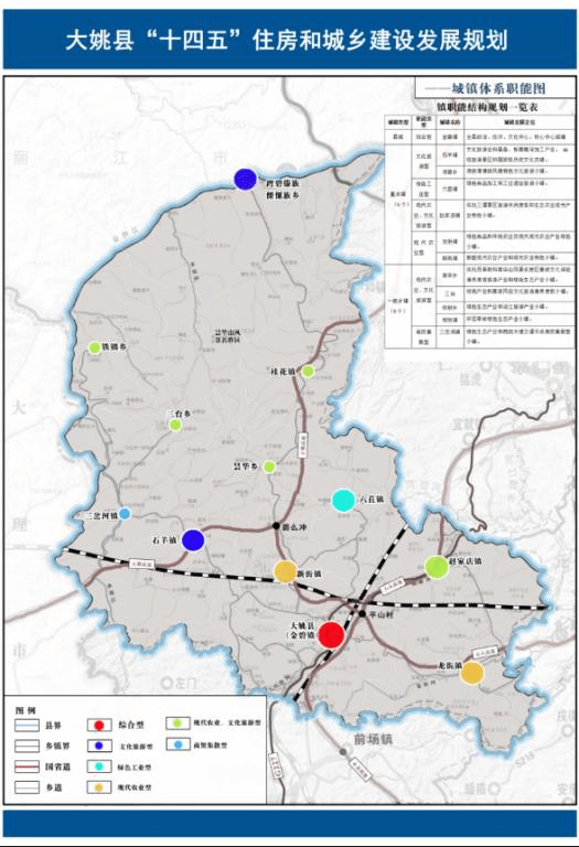 城镇空间布局不断优化。不断优化与全县资源禀赋、开发强度、发展潜力更加适应的城镇空间格局,以楚北城镇群为载体,县城和乡镇合理分工、功能互补、协同发展的城镇格局,促进城镇空间布局形态多元化、结构协同化发展。不断推进以县城为重要载体的城镇化建设,促进城乡空间融合发展,融入省级层面区域合作。充分发挥大姚位于楚雄、大理、丽江、攀枝花四个州市的交界点的区位优势,打造滇中对外开放北大门,大滇西旅游环线对外开放西大门;向北主动承接成渝双城经济圈,向南借助楚姚高速融入滇中城市经济圈一体化建设;向西融入大滇西旅游环线,与大理、祥云、宾川中部增长极合作发展,错位发展。