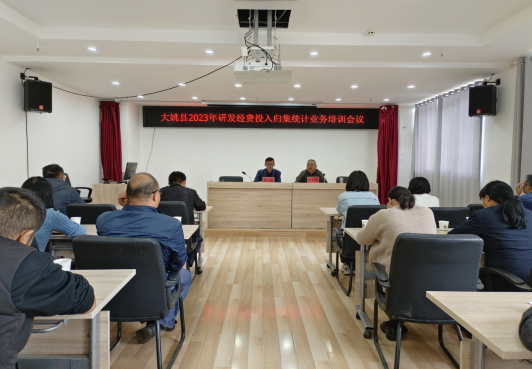 为深入贯彻落实2023年10月23日州科技局组织召开的全州科技工作会议精神,加快补齐我县研发经费投入短板弱项,进一步夯实科研创新基础。大姚县工业信息化商务科技局于2023年10月25日召开大姚县2023年研发经费投入归集统计业务培训会,县工业信息化商务科技局、县统计局分管领导、相关工作人员;大姚县彩印有限责任公司、云南大姚祥华工业制造股份公司等42户规模以上工业企业研发投入负责人及统计人员参加培训会议。
