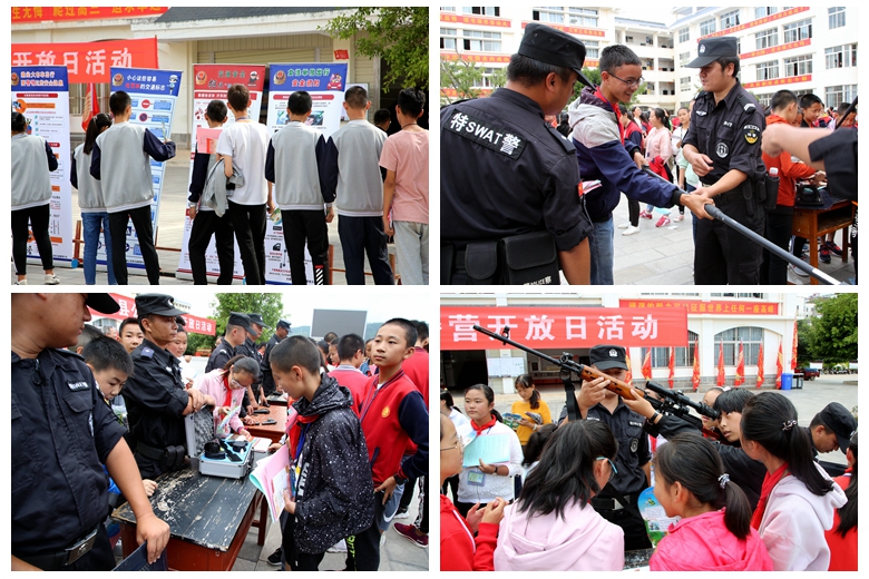 当日,县公安局还举行了大姚县公安机关2018年警营开放日活动,县公安局政工、指挥中心、法制、国保、禁毒、治安、特警、交警、消防等部门的民警、特警队员、消防官兵分别向参加活动的县综治委成员单位领导、中小学校负责人、大姚一中初中部师生开展了道路交通安全手势、交通信号标识识别、精神病人防控、警用装备、枪械、消防器材展示、灭火器使用、暴恐事件防范处置等现场演示和演练。