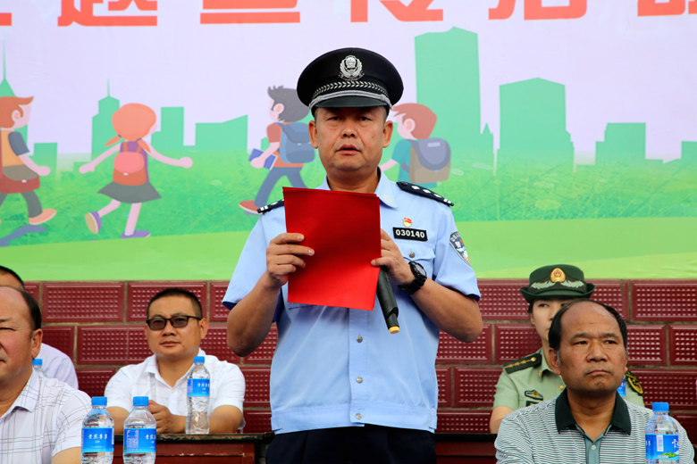 在“校园安全周”启动仪式上,县人民政府副县长、公安局长潘健作了动员讲话。潘健副县长指出:近年来,在县委、县政府的坚强领导和县级相关部门的大力支持帮助下,通过全县中小学校坚持不懈的努力,“平安校园”建设深入人心,全县中小学校安全工作形势趋于平稳,营造了一个教书育人的良好环境,为全县经济发展社会稳定作出了积极贡献。但是,我们清醒地看到校园安全工作还存在不少薄弱环节,学校安全形势依然严峻。一是自然灾害时有发生,给学生生命财产安全带来直接损害和严重威胁。二是我国改革进入攻坚区和深水区,社会稳定进入风险期,一些不法分子把中小学校师生作为其报复社会、制造影响的目标。三是学校安全基础总体薄弱,极个别学校领导安全意识淡薄、校内安全管理松弛,安全教育流于形式。四是一些涉校安全监管存在盲区,校外监管难度加大,学生校外安全联防联控工作机制亟待加强完善。今天,我们在这里举行以“安全伴我在校园,我把安全带回家”为主题的2018年大姚县秋季学期“校园安全周”启动仪式。其目的就是进一步提高在校青少年的法治意识和自我保护、安全防范能力,进一步营造和谐、健康、安全的校园环境,推动我县教育名县建设。
