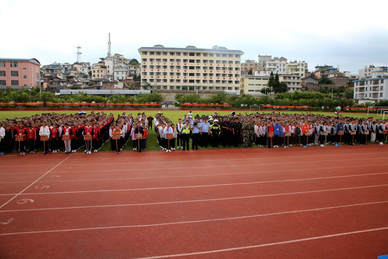 秋风送爽,丹桂飘香。9月14日上午,大姚县2018年秋季“校园安全周”启动仪式暨县公安局警营开放日活动在大姚一中举行。县人民政府副县长、公安局长潘健出席会议,县委宣传部、县委政法委、教育、公安、司法、卫计、安监、市场监督管理、地震、县公安消防大队等综治委成员单位领导及县城区9所中小学校负责人和大姚一中初中部全体师生共900余人参加启动仪式和活动。