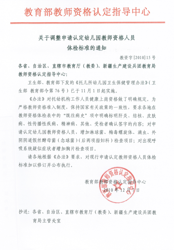 3. 关于调整申请认定幼儿园教师资格人员体检标准