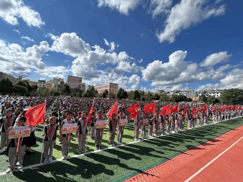 为全面落实中国少年先锋队第九次全国代表大会精神,进一步增强少先队员的光荣感和组织归属感。大姚县金龙明德小学于2025年10月13日,即第76个中国少年先锋队建队纪念日当日开展党建带队建2025年庆祝少先队建队76周年活动。来自全县部分乡镇中小学的大队辅导员及金龙明德小学师生共计2000余人参加活动。