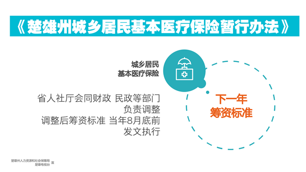 《楚雄州城乡居民基本医疗保险暂行办法》明确全州执行统一的筹资标准。年度筹资标准根据国家规定及我州经济社会发展水平确定,并随经济发展和基本医疗保险基金运行情况进行动态调整。