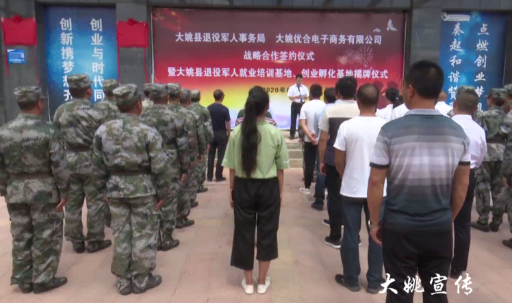 揭牌仪式结束后,县退役军人事务局有关负责人和大姚县优合电子商务有限公司负责人签署战略合作协议;吴启荣和胡远过为五名退役军人创办的企业授牌并颁发大姚县退役军人创业导师聘书。(县融媒体中心:代承红)
