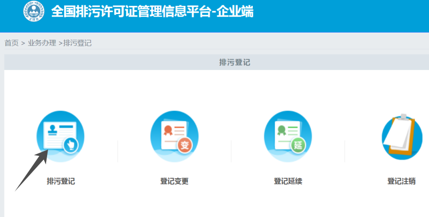 5、进入登记页面,点击“排污登记”进行登记,登记时核对登记信息(请特别注意后面的填报注意事项,部分行业需将工业噪声纳入排污登记),填报完成提交后系统会在几分钟之内生成登记回执,将登记表和登记回执下载打印,企业留存即可。