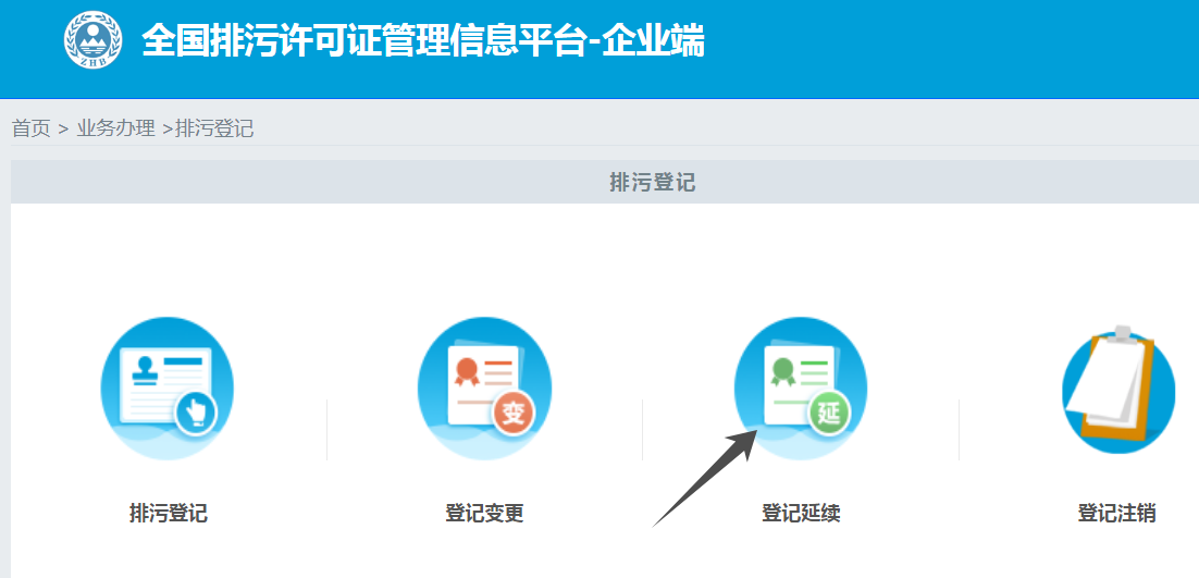 未超有效期的排污单位应在有效期届满前20日内进行登记延续。第1、2、3步步骤同上;