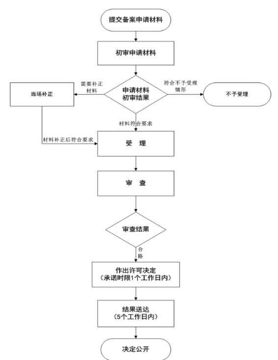 | 对申请材料符合要求的,准予受理,并向申请人发送《受理通知书》。对申请材料不符合要求且可以通过补正达到要求的,将当场或者在时限内向申请人发送《申请材料补正告知书》一次性告知,逾期不告知的,自收到申请材料之日起即为受理,对不在 受理范围或申请材料不符合要求的,将作出不予受理的决定,并发出《不予受理决定书》。