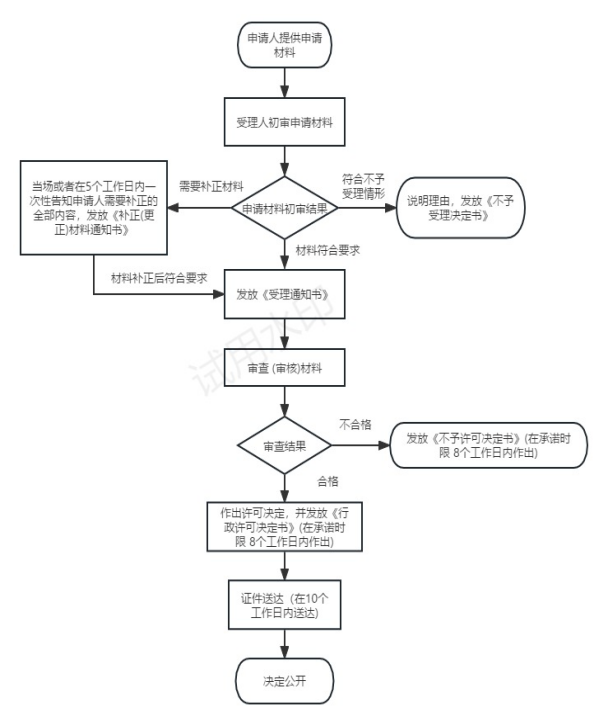 | 1.申请符合法定条件、标准的,依法作出准予行政许可的书面决定,需要颁发行政许可证件的,制作行政许可证件(含电子证照);2.申请不符合法定条件、标准的,依法作出不予行政许可的书面决定。