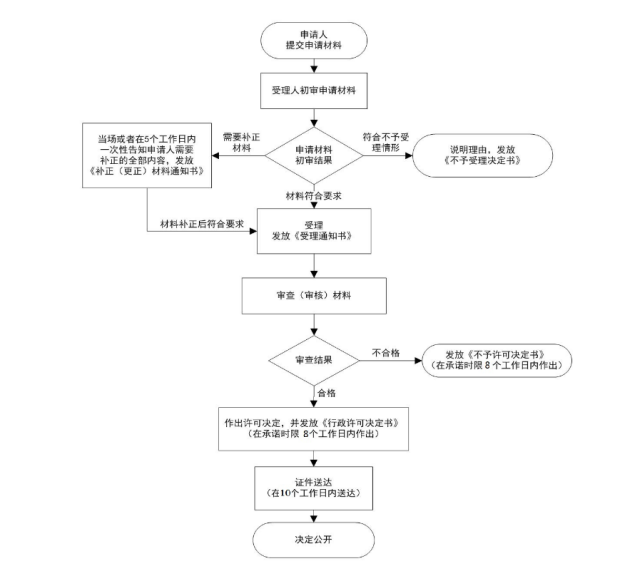 | 本行政许可事项采用书面审查的方式进行,审查人自申请受理后进行审查,并提出审查意见。