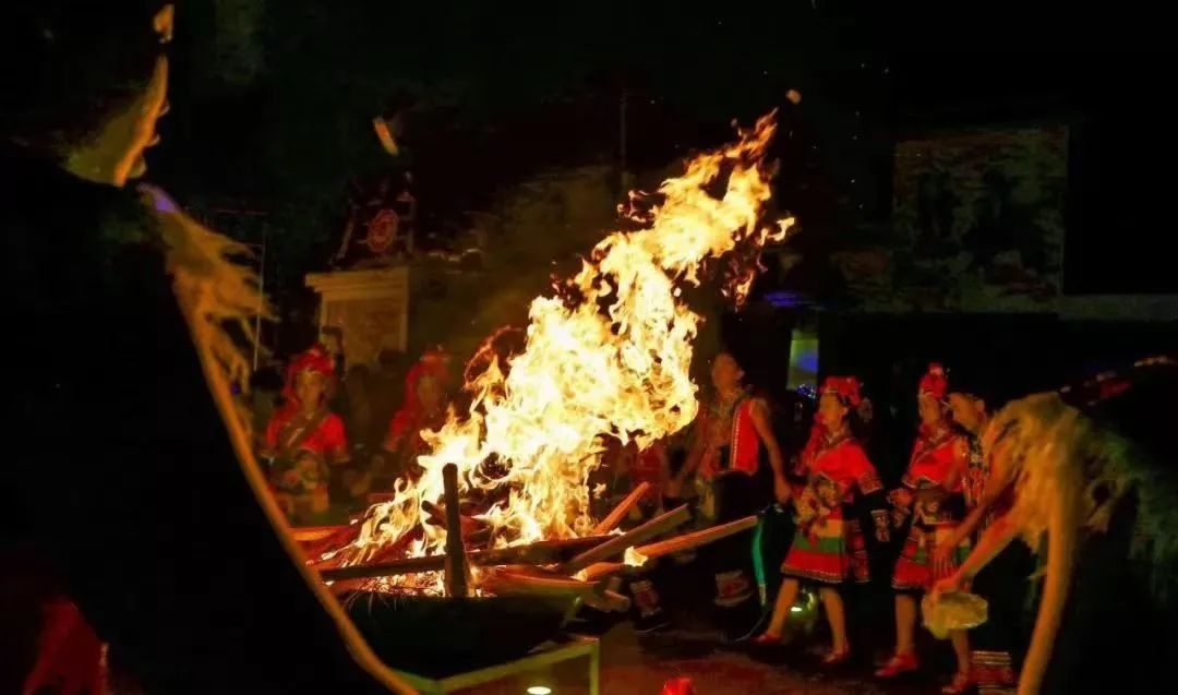 然后再举着火把到田间地头,挥舞引蛾,扑灭害虫。巡游之后,将火把插在田头地角,村前开阔地带,然后男女青年就围着火把跳起欢快的“左脚舞”,老人们则围着坐在火塘旁边,打开醇香的米酒,互相敬酒,互祝吉祥。这里的人们,还兴早早将出嫁的女儿接回家来。节日这天,杀猪宰羊,同吃同住,以示亲人团聚,这古老的习俗也就一直沿袭至今。