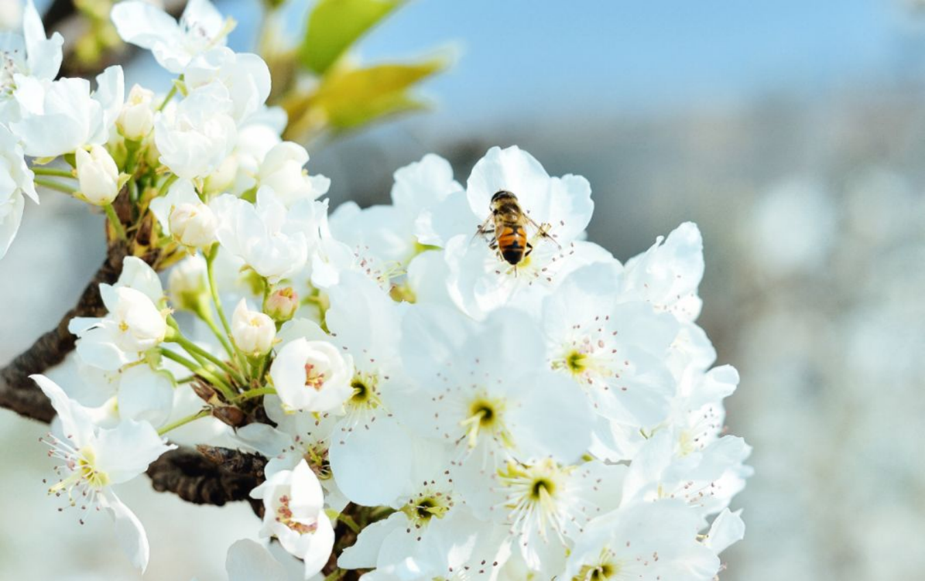 清风徐徐,花瓣落下来,偶尔跌进杯中,涟漪微动,动人心魂。仰头,树是一片白,俯首,地是斑斑的白。梨花香淡淡沁人心脾,暖阳清明,光阴恍惚,像坐在了流淌的月光上,于是变成春光里的一瓣山川……