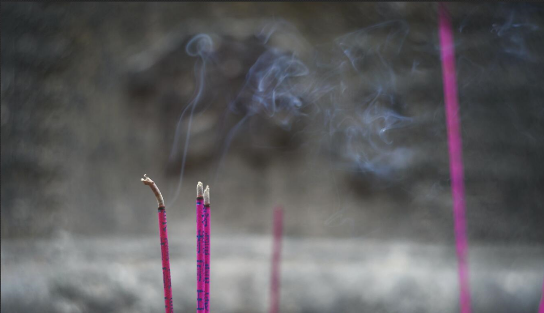 众生祈福烟袅袅,晚钟悠扬香客归。