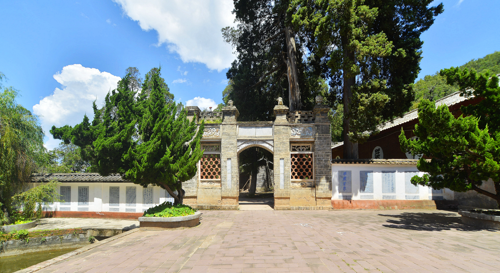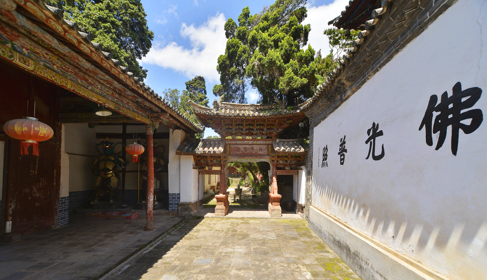 妙峰山德云寺:德云寺位于大姚县城南11公里仓街乡境内,面积约8平方公里。每当夕照蒸烟,万山皆紫,山头浓翠欲滴,数十里外,见之如在图画中,大姚县古八景之一“妙峰晚翠”即指此景。妙峰山为滇中佛教圣地之一,区内峰奇水秀,古柏参天,建于明崇祯二年的德云寺,整个建筑群体雄伟,庄严肃穆,精工细致,亭、坊、池阁交错,柱、檐、楹、碑刻相互映衬,绘画、雕塑细腻美观,虽经历三百多年沧桑,仍然保持完好,光彩夺目。