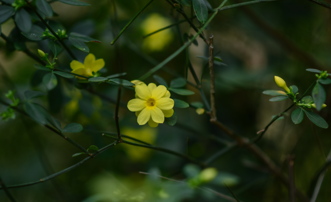 迎春花犹如春天的使者,远远望去,像一只只小蝴蝶在枝条上看风景,每一朵花都有着自己独特的魅力,有的含苞待放,宛如害羞的少女;有的盛开怒放,展示着自己的婀娜身姿。阳光撒满了花瓣,春风轻轻吹来,花朵微微颤动,仿佛每朵花儿都荡漾着微笑,唤醒着春天、酝酿着春韵。