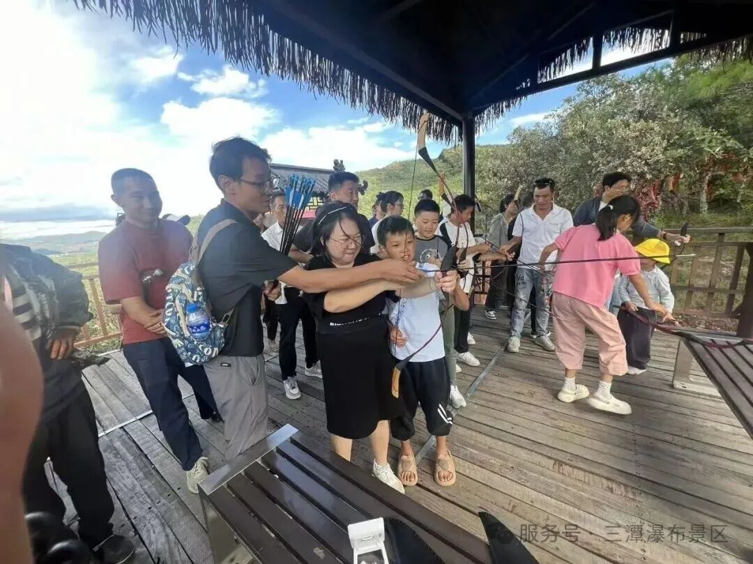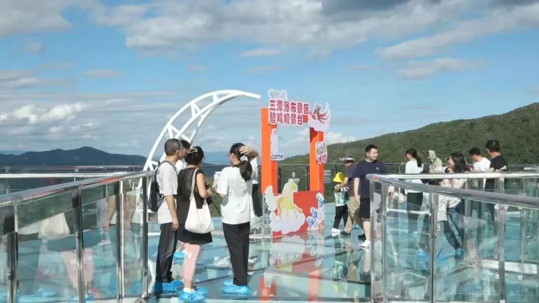(一)三潭瀑布玻璃观景平台成为打卡新亮点。三潭瀑布景区碧鸡观景台于10月1日正式对外开放,来自全国各地的游客到三潭瀑布景区,打卡碧鸡观景台,在工作人员的引导下有序乘坐登山魔毯到达观景台,开启“云端漫步”之旅。站在通透如镜的玻璃平台上,脚下是深谷幽涧,眼前是三潭瀑布与漫山苍翠,不少游客纷纷举起手机、相机记录美景。同时三潭瀑布景区也举行了“趣”大姚——“霓裳舞瀑·三潭邀月”系列活动,包括:萌趣栈道文化漫步、篝火广场全民盛宴、儿童乐园狂欢等。三潭瀑布景区以多元的游玩体验、优质的服务,为游客们打造了一个个精彩的假日瞬间。