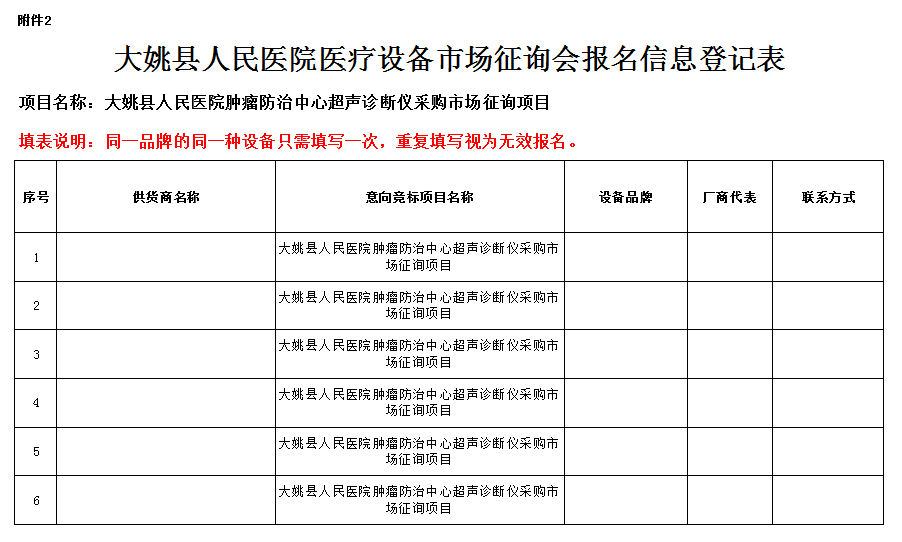大姚县人民医院因肿瘤防治中心业务发展需要,拟对超声诊断仪及电子胸腔镜等医学装备一批进行市场征询,近期将召开设备征询会。诚邀具有合法资质,有销售权或代理权,有完善的物流供应能力,有售后服务能力的生产厂商或获生产厂商委托授权的供应商(以下简称"供应商及其代理人")参加征询。欢迎有意者参与遴选的各厂家或经销商准备相关资料,按照公告准时参加,我们将严格遵循“公开、公平、公正”的原则,认真对待每位参与征询的潜在参与人。