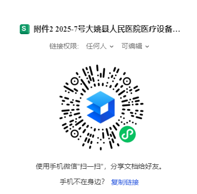 【金山文档】 附件2 2025-7号大姚县人民医院医疗设备产品介绍会报名信息登记表(微信报名表)https://www.kdocs.cn/l/cl1FkeinS1mj