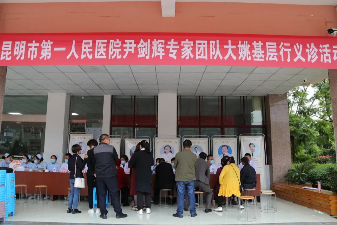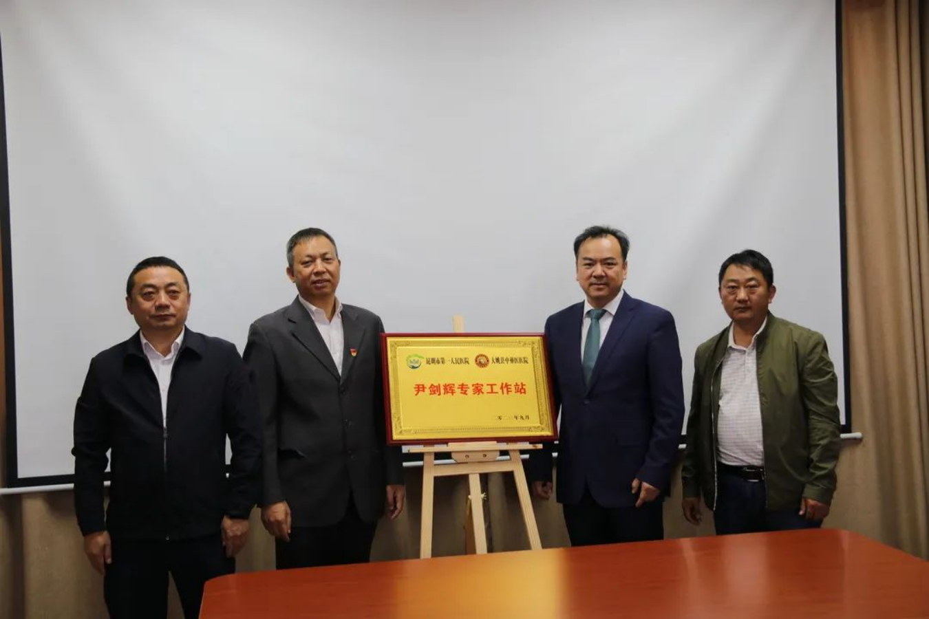 蜻蛉欢歌,阳明合笑,2023年9月2日,昆明市第一人民医院尹剑辉专家团队到我院举行“尹剑辉专家工作站”揭牌仪式,并开展义诊、讲座等相关活动。县卫健工委委员、卫健局副局长陈仕军,医院党政班子及全体中层以上干部参加仪式。揭牌仪式由县医共体总院纪委书记、县中彝医医院党总支书记杨洪祥主持。