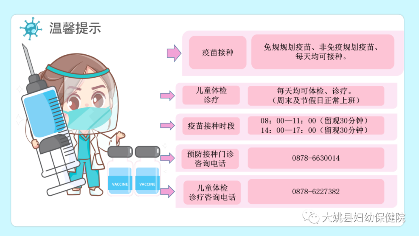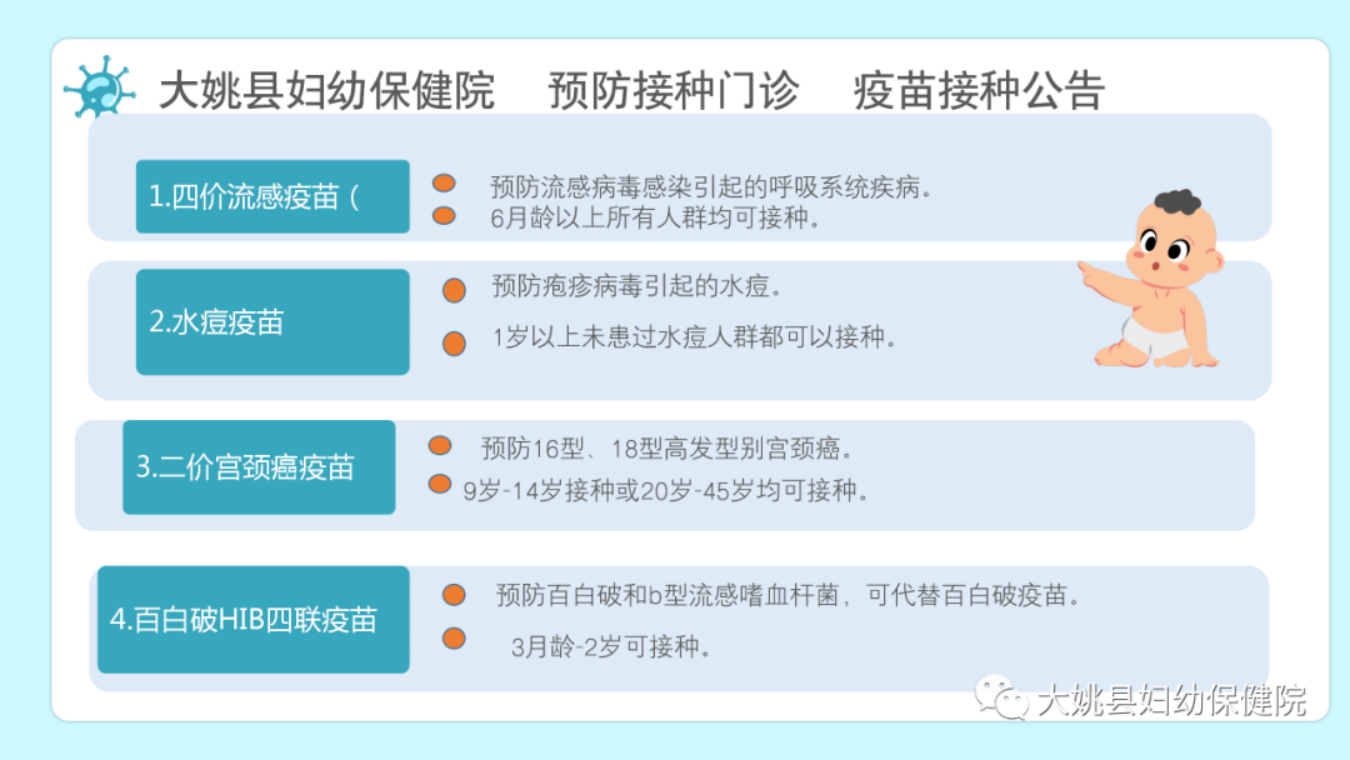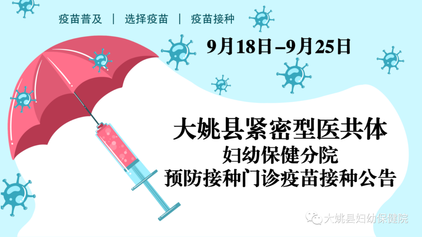 大姚县紧密型医共体妇幼保健分院—预防接种门诊疫苗信息公告(9月18日-9月25日)