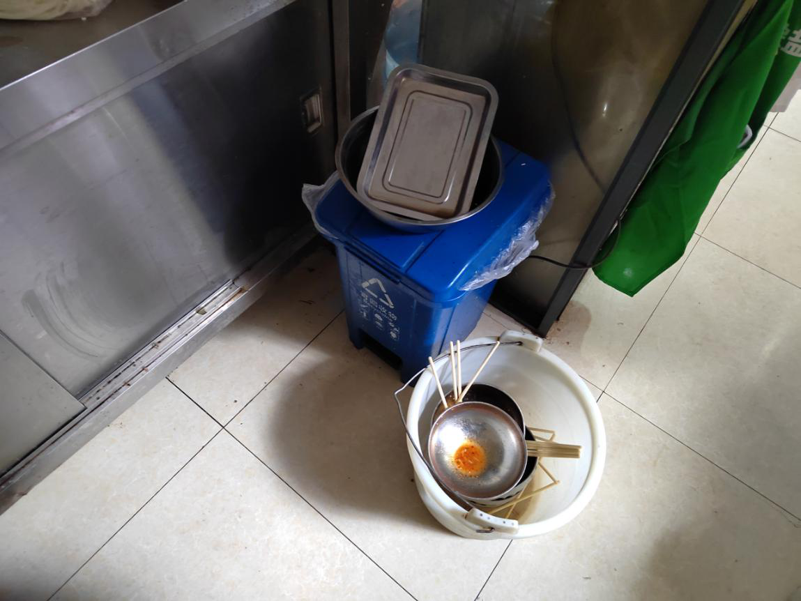 3.餐饮用具未及时清洗,清洁后的餐饮用具未放入保洁柜,餐厨废弃物(泔水)未及时清理;