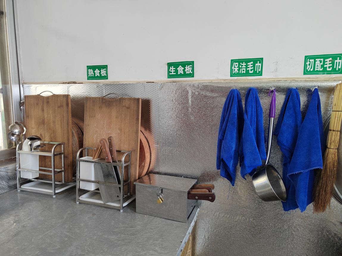 3.加工场所干净卫生,设施设备齐全,制作工具区分标识明显,防止食品交叉污染措施有效;