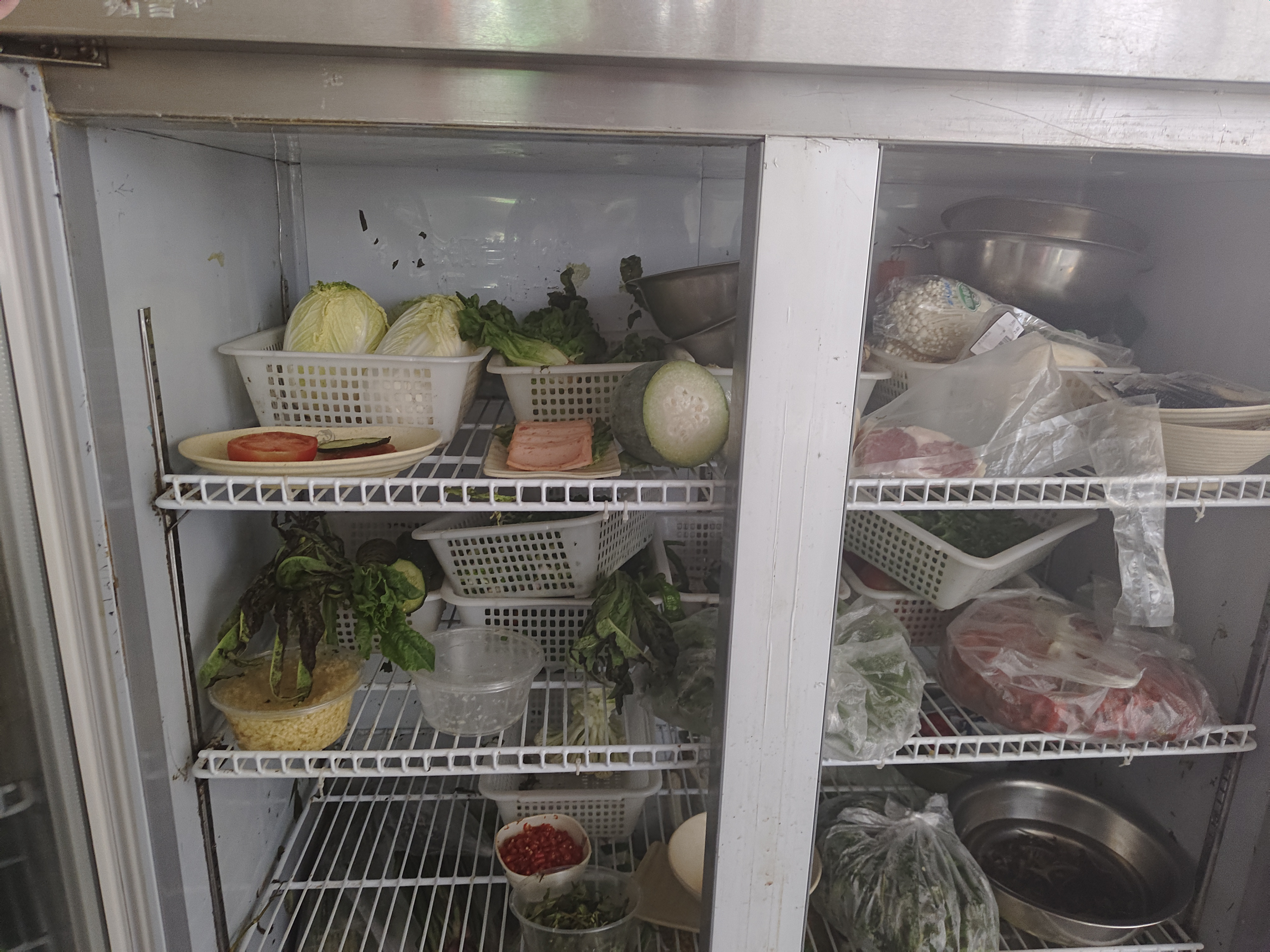 3.保鲜柜未定时清理保洁,生、熟食混放;