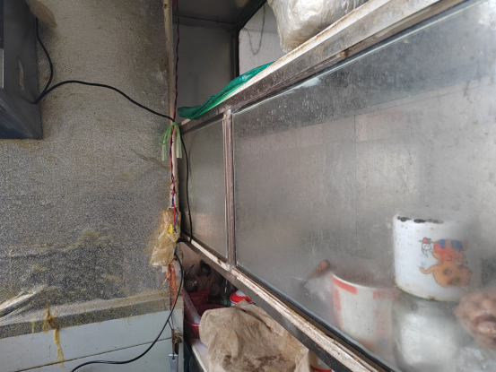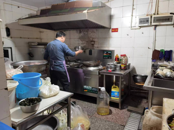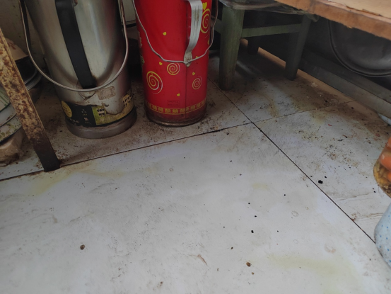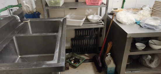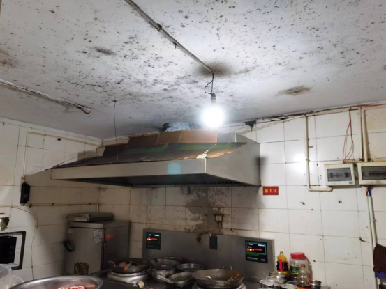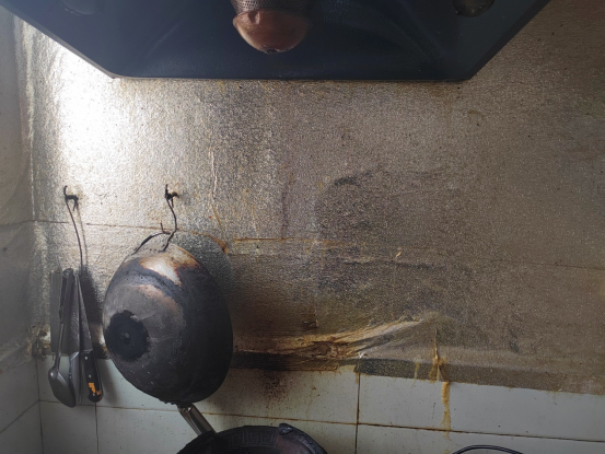 3.操作间环境卫生脏、乱、差,油烟机清洁不及时,油污重。