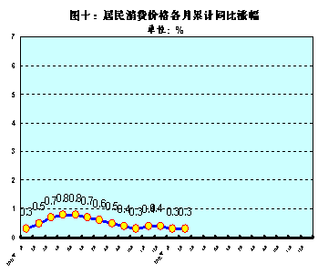 4、居民消费价格总水平累计比上年同期上涨0.3%,商品零售价格总水平累计比上年同期上涨2.2%。