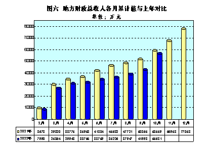 5.地方财政总收入累计实现55681万元,比上年同期下降4.9%。一般公共预算收入累计实现43408万元,比上年同期下降6.0%。一般公共预算本级支出完成216532万元,比上年同期下降1.65%。