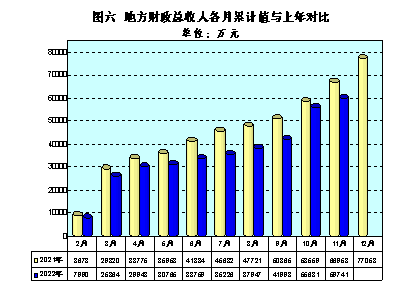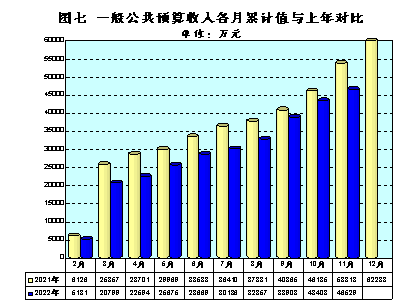 5.地方财政总收入累计实现59741万元,比上年同期下降10.77%。一般公共预算收入累计实现46529万元,比上年同期下降13.5%。一般公共预算本级支出完成229686万元,比上年同期下降5.23%。
