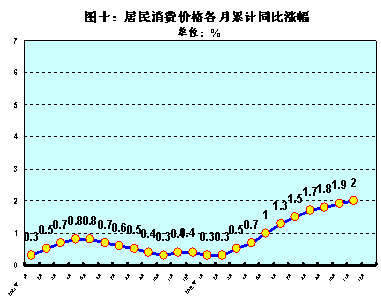 4.居民消费价格总水平累计比上年同期上涨2.0%,商品零售价格总水平累计比上年同期上涨3.9%。