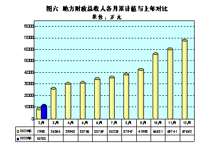 5.地方财政总收入累计实现10703万元,比上年同期增长34.0%。一般公共预算收入累计实现7883万元,比上年同期增长52.2%。一般公共预算支出完成46316万元,比上年同期增长0.1%。